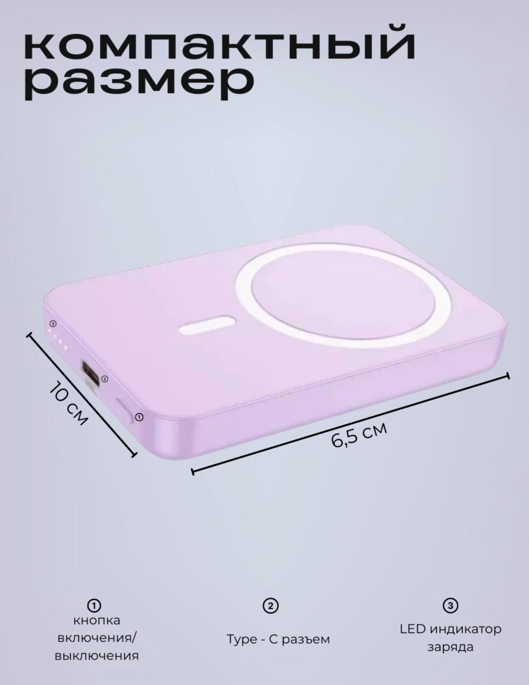 Внешний аккумулятор D8 10000 мАч фиолетовый